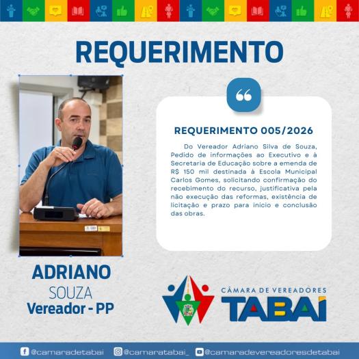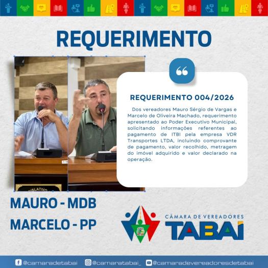 Na Câmara Municipal de Tabaí, vereadores apresentaram requerimentos durante a sessão ordinária com foco em atender necessidades e demandas da população de Tabaí.